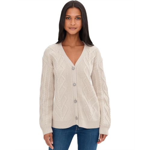 There's so much to love about the Splendid Harlow Hearts Cardigan. Knit with a romantic cable pattern that subtly forms heart shapes, this pull-on style cardigan blends timeless texture with playful detail. It features a V-neckline, a button-front closure, long sleeves with ribbed cuffs, and a straight ribbed hem. Its rich hue and antique-inspired buttons add a touch of sophistication, while the relaxed fit makes it easy to layer over tees, tanks, or dresses.