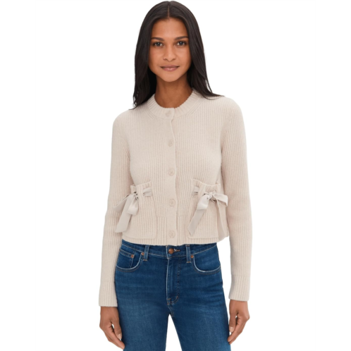 A cardigan with a luxe twist. The Stassi Satin Tie Cardigan is crafted from a cozy ribbed knit and elevated with satin bow details at the pockets. Perfect for layering, this button-front style blends everyday ease with a touch of polish.