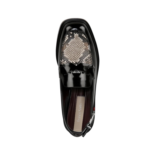Combining the ease of womens loafers with a slingback silhouette, the Franco Sarto Giada Sandals are artful and tailored womens shoes that you are going to love. The flats feature a faux leather upper partially made from recycled materials with metallic ornament detai on penny holder strap, faux leather lining, and an ethylene vinyl acetate insole. The sqaure toe design with block heel gives style to the sandals and the adjustable strap & buckle closure ensures a secured fit.