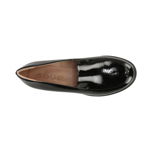 Take every step in style and comfort by wearing the Naturalizer SOUL Naturalizer - Luv shoes. The slip-on style shoes have a round-toe design with a slight block heel for a classy look. The patent leather upper with fabric lining and foam footbed adds comfort. The banana padding at the counter offers extra cushioning for all-day wear.