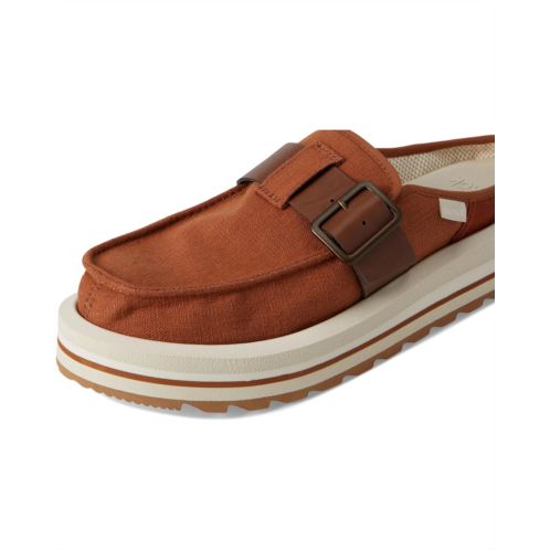 The Sanuk Donna Sash-hey is a fresh mule silhouette that blends laid-back ease with classic style. Crafted with a cotton-linen blend upper, it features a raised toe seam, elastic gore, and a bold buckle detail across the instep, adding both flair and adjustability. Inside, the hemp lining and contoured high-rebound Soft Top footbed (infused with freshness-protecting technology) make it barefoot-friendly and all-day comfy. The serrated platform outsole, made with recycled materials, delivers lightweight traction.