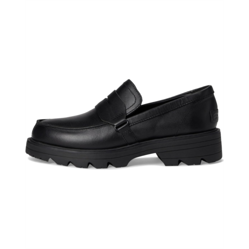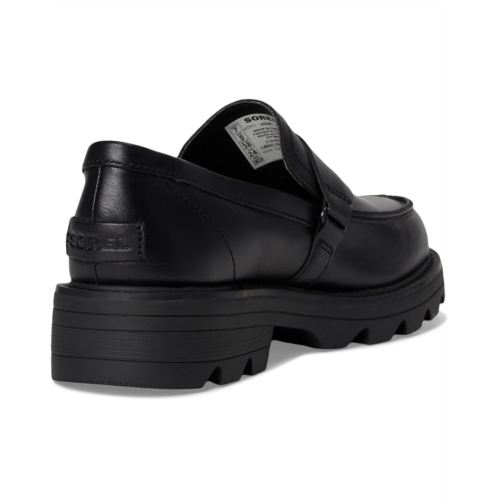Dress up without downgrading comfort or quality wearing the SOREL Revel Ave Loafer. This loafer's elegant tailoring and durable construction will take you from morning meeting to happy hour with effortless style. It features a leather upper, polyester lining, and a removable molded EVA insole with synthetic topcover. The slip-on style loafers come in a rubber welt construction with stitch detail, a moc toe shape, and a block heel detail.