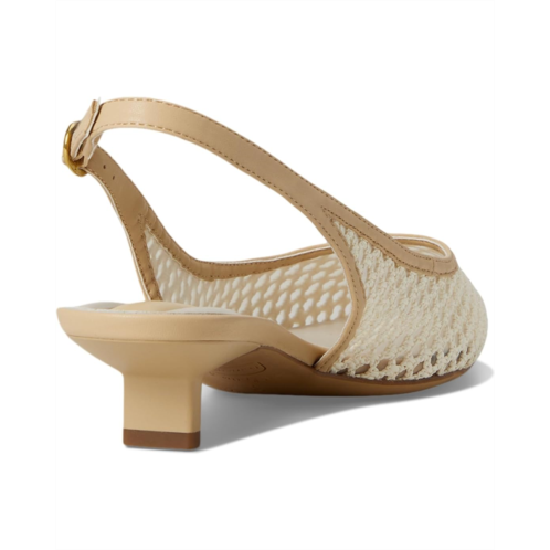 The art of polished ease wearing Franco Sarto Pura Slingback Shoes. Crafted with a luxurious leather upper and insole, these slingbacks strike the perfect balance of sophistication and ease. The chic pointed toe creates an elegant silhouette that instantly refines any ensemble, while the buckle slingback strap ensures a secure, tailored fit. A low, sculpted architectural heel offers stylish support for comfort seekers craving subtle lift without compromise. Finished in faux raffia with premium faux leather lining, the refined texture delivers timeless appeal. The flexible