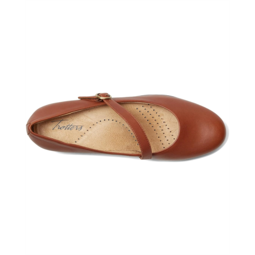 Elevate your everyday style with the Trotters Rochelle Sandals. Expertly crafted from premium leather upper and breathable leather lining, this classic Mary Jane style shoe features an adjustable buckle with elastic goring for a comfortable and customized fit. The cushioned insole offers additional comfort, making these shoes ideal for extended periods of use. The sleek silhouette with almond toe shape makes them perfect for both professional and casual settings.