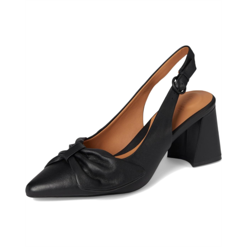 The Gentle Souls by Kenneth Cole Diana is a sling back heel featuring bow-adorned pointy toe vamp and leather upper construction. With a buckle closure, the footwear has leather lining and PORON insole for all-day cushioning comfort.