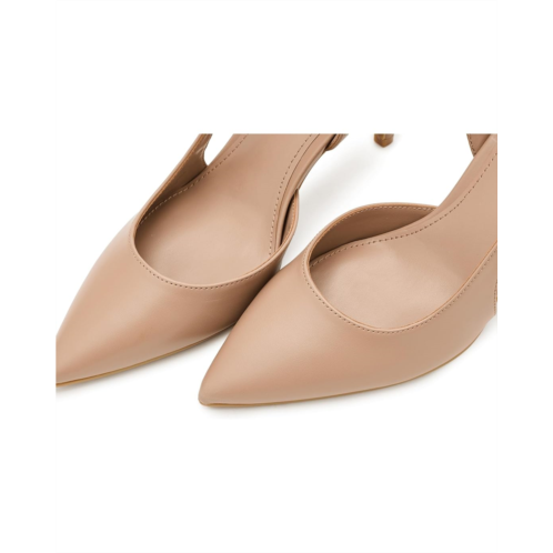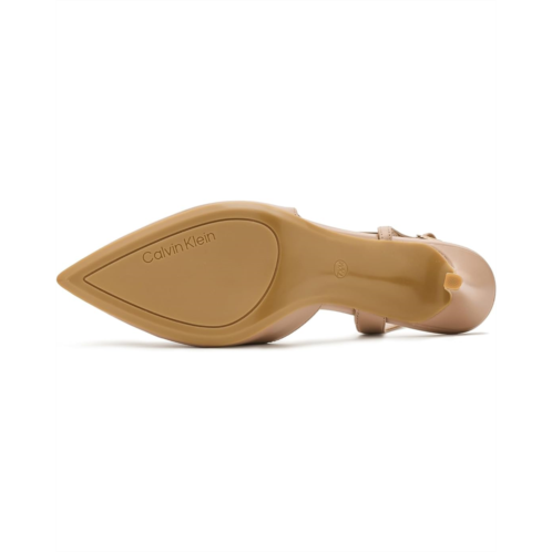 Modern and stylish, the Calvin Klein Gerinny Dress Pumps are a wardrobe must have! Featuring a slip-on silhouette, stiletto heel, and pointy toe, the pump is sure to impress. It comes crafted with a faux leather upper with allover patterned brand logo, man-made lining, and a cushioned footbed. The backstrap with adjustable buckle closure ensures a sung, secure fit.