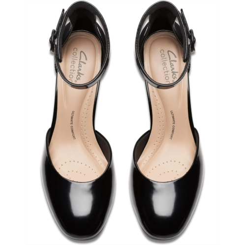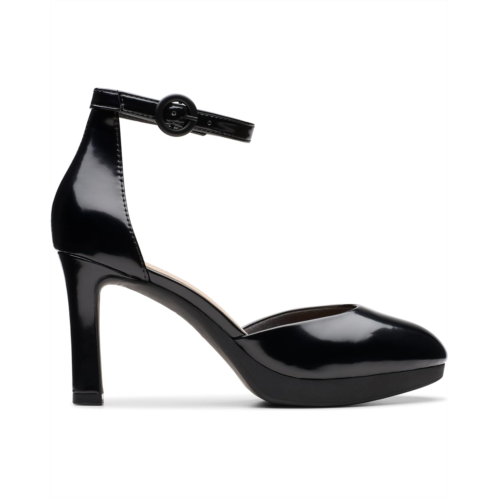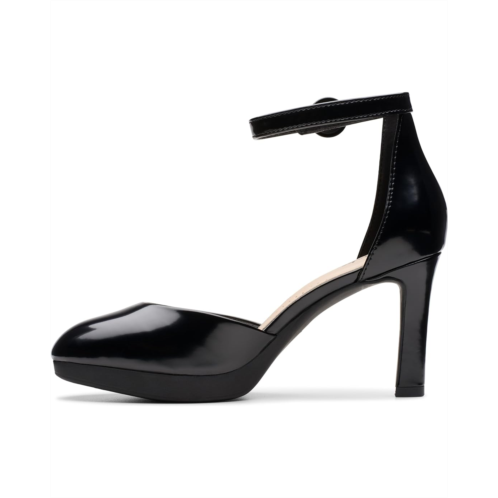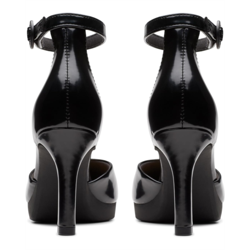 Bring that shiny flair to your party look donning the Clarks Ambyr 2 Cove. This pair of stiletto heels features hook-and-loop with adjustable ankle strap buckle closure, brand detailing on the footbed, and polyester upper.