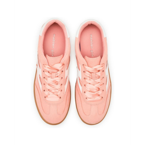 Made for every stride in style, the Madden Girl Giia: suede upper chic, cotton lining comfort, and rubber insole ease in every step. The GIIA sneaker boasts a low-top profile for a timeless athletic appeal, complemented by a plush PVC outsole for durability. With a lace-up closure ensuring a snug fit, these sneakers offer effortless style and support for all-day wear.
