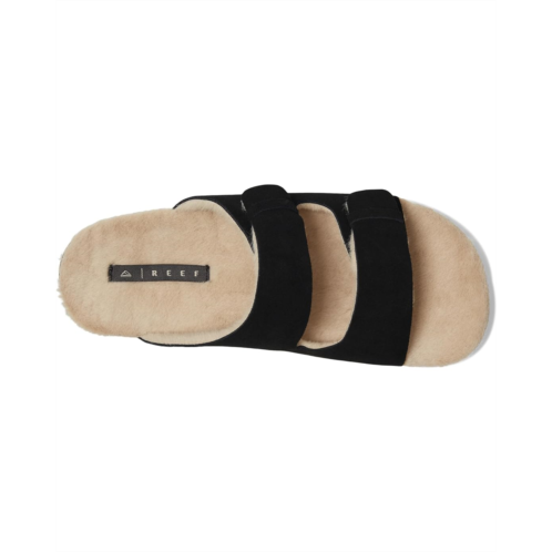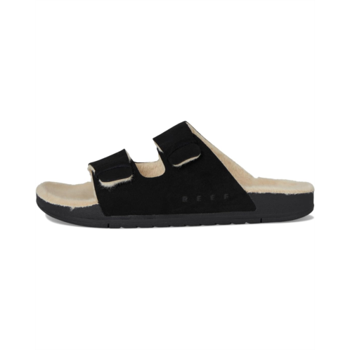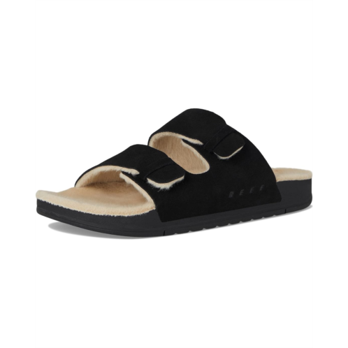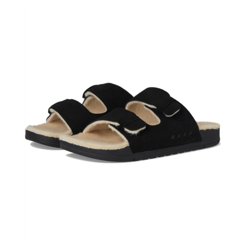Reef Ojai Two Bar Cozy! Elevate your casual look with these women's cozy suede slides that blend fashion and function effortlessly. Crafted with full grain leather upper straps and lined with plush faux fur, they cradle your feet in luxurious comfort. The anatomically contoured footbed ensures all-day wearability, while the non-marking rubber outsole, made from recycled materials, provides excellent traction and durability. Embrace the spirit of the beach and live by the motto Beach Freel- whether you're strolling on the sand or enjoying a day out, these slides are your perfect companion!
