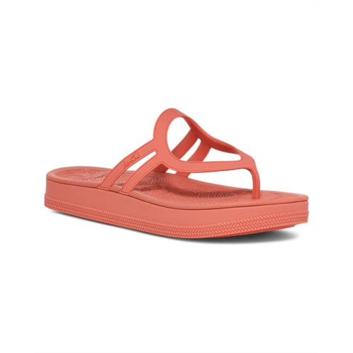 Make your morning and evening walk schedules quite comfier by wearing the Sanuk Sunshine SL Flat Sandals. This toe-post thong has a water-friendly molded upper strap detail and a lightweight IMEVA SugarLite footbed.