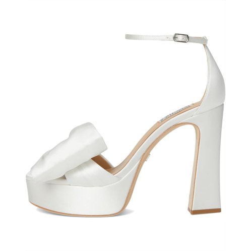 Sculpted for the bold, the Badgley Mischka Alora sandals are crafted from silk upper, leather lining, and insole. These platform sandals with bow detailing on the vamp features round toe, block heels, and buckle closure.
