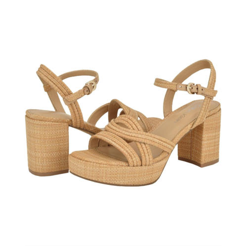 Walk with fantabulous flair wearing the Calvin Klein Lailly Sandals. The block-heeled footwear features faux leather upper construction with buckled ankle strap closure and open toe silhouette.