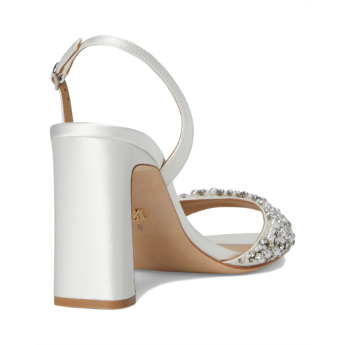 The Badgley Mischka Jenesis heels are embellished slingback heeled sandals that are a perfect choice for parties and events. These sandals are made of a foam insole and leather lining that provide all-day comfort. The silk upper features a slingback strap for a secure fit. Make a glamorous entry wearing these leather heels.