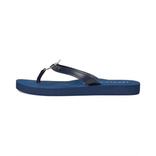 Tommy Hilfiger Crelina is your sunny days style's VIP pass. These statement-making thong sandals are designed with a sleek PU upper that's both stylish and easy to clean, while the signature logo medallion on the strap adds an iconic, eye-catching twist. Slip-on ease means you're out the door in seconds, and the comfy polyester lining teams up with a premium leather insole to keep your feet feeling fabulous all day long. The rubber outsole offers steady steps, whether you're beach-bound or brunch-ready. Featuring a T-toe design for added elegance, the Crelina sandal is that warm-weather upgrade your wardrobe's been waiting for-chic, effortless, and unmistakably Tommy.