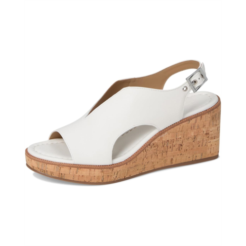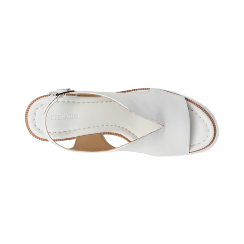 Raise your standards. The Bernardo Kuarta slingback wedge sandal reconsiders the essentials by uniting a signature, sculptural Bernardo upper with an elevated wedge heel that delivers both drama and comfort. Crafted from leather upper, lining, and cork insole, this pair of sandals features open round toe, buckle closure, and brand detailing on the footbed.