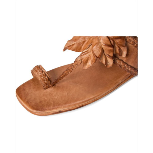 Distressed leather upper with floral accent.