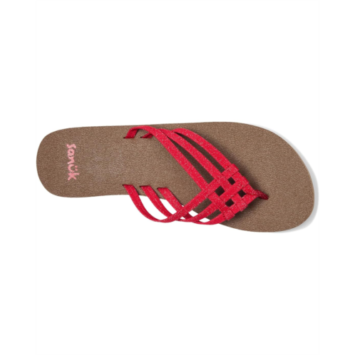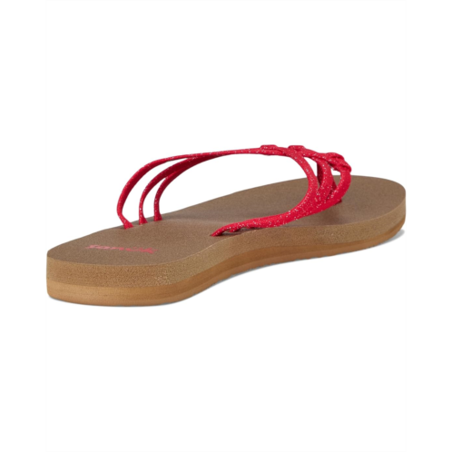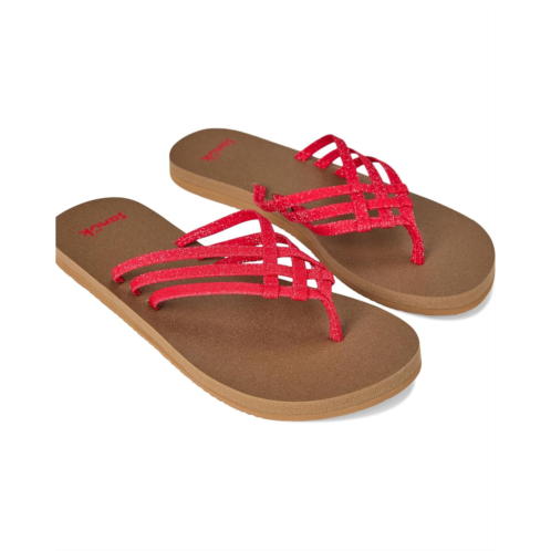 Strut the shore in style wearing the Sanuk Yoga Sandy II Sparkle. Crafted from polyester metallic upper strap, jersey lining made with GRS certified recycled polyester. Featuring original memory foam Yoga Mat footbed that molds to your foot for instantly Om-mazing comfort, and custom Happy U wave tread sponge rubber outsole made with recycled material.