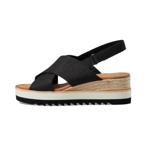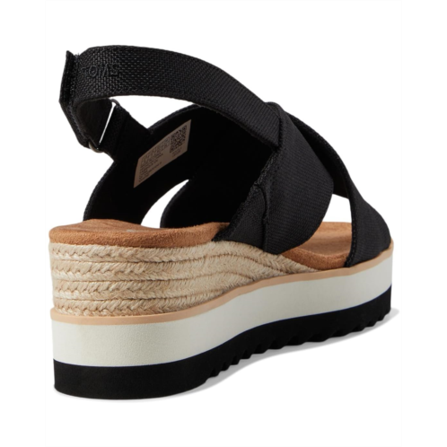 Introducing TOMS Diana Crossover: where style meets comfort in a best-selling wedge sandal now with a chic crossover silhouette. Crafted with a heavy canvas textile upper and a rope-wrapped platform wedge, it features a secure ankle strap and velcro heel closure for a personalized fit. With an EVA outsole, OrthoLite Eco X40-Hybrid insole, and sawtooth rubber grip, enjoy unmatched comfort and traction for all your casual occasions.