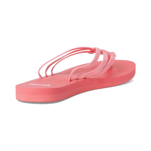 Featuring a multi-strap polyester upper, the Sanuk Yoga Sandy II slippers are an ideal choice for your everyday wear. The original memory foam Yoga Mat footbed molds to your foot for instantly Om-mazing comfort while the polyester lining provides added breathability. These slide slippers are crafted with a 53% recycled Custom Happy U wave tread sponge rubber outsole for all-day wearability.
