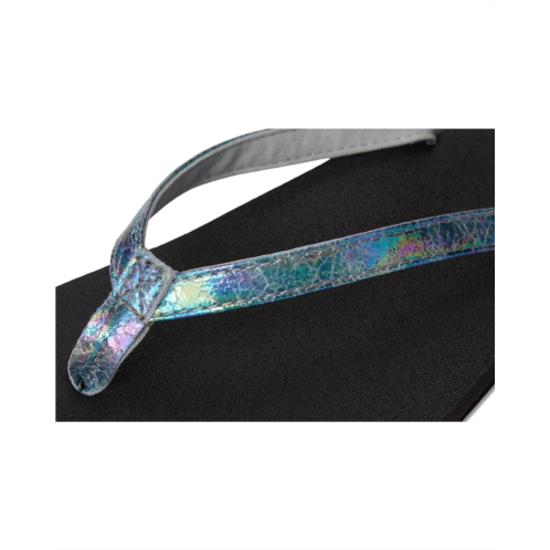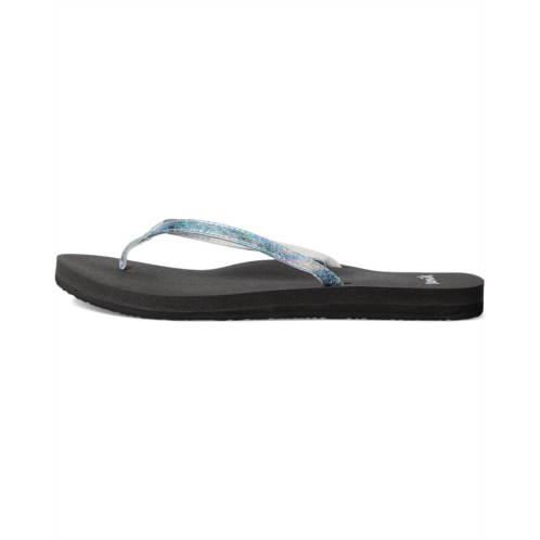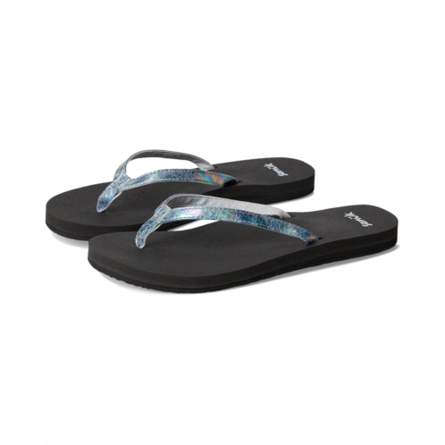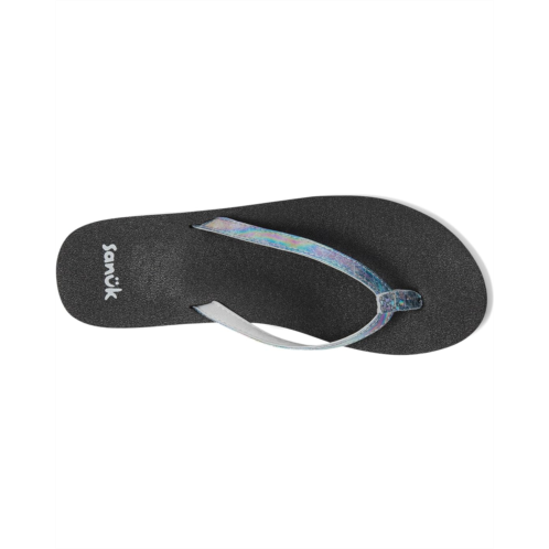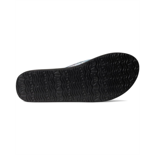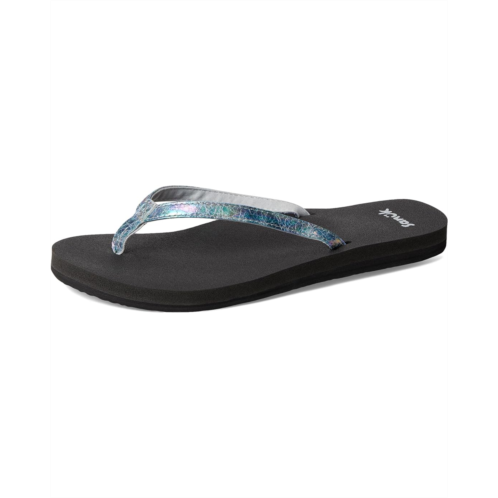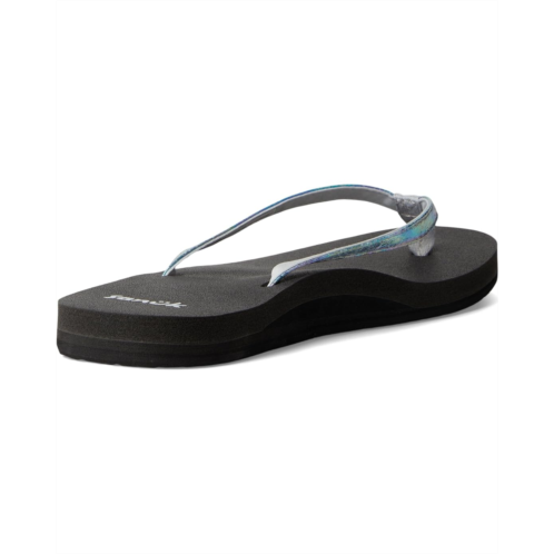 Experience luxurious comfort with every step you take wearing Sanuk Yoga Joy II Iridescent Slippers. The open round-toe slippers are crafted with a polyester metallic upper with a T-strap, jersey lining made with GRS-certified recycled polyester lining, and original memory foam Yoga Mat footbed. The custom Happy U wave tread sponge rubber outsole is made with recycled material, making it an environment-friendly choice.