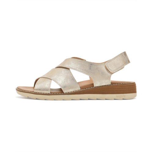 The BOBS from SKECHERS Bobs Arch Fit Oasis - Cozy Crosser sandals are a comfortable and stylish choice for women's sandals. They feature soft duraleather cross straps and an Arch Fit footbed for all-day support. The lightweight, flexible rubber outsole provides cushioned comfort with every step, while the hook-and-loop closure allows for an adjustable fit. These slip-on sandals are made of a faux leather upper and a rubber insole. With their casual, strappy silhouette, these sandals for women are perfect for warm-weather wear.