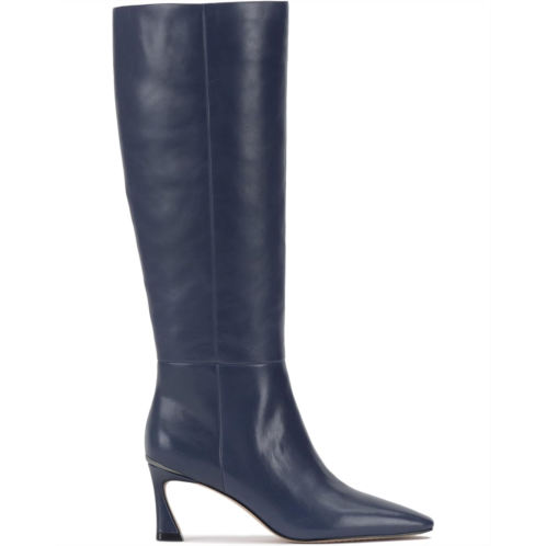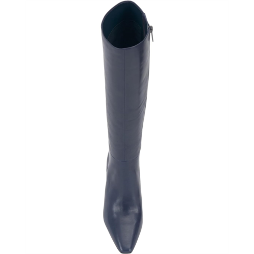 This sleek tall shaft dress boot sits atop a flared 2.5 in heel. The tonal, leather covered heel has a metal rand detail serving both fashion and function. Designed with a soft snip toe, the boot has an inside zip for easy entry.