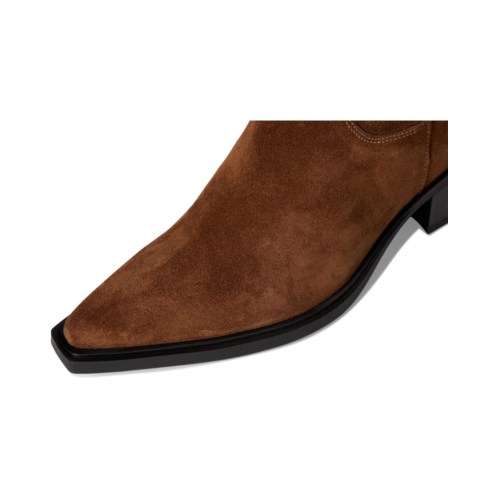 The Vagabond Shoemakers Kelsey Suede Bootie boasts a minimalistic silhouette with a western-inspired design. The style is crafted from suede upper and features a snip toe shape, zippered side closure, and decorative seams.