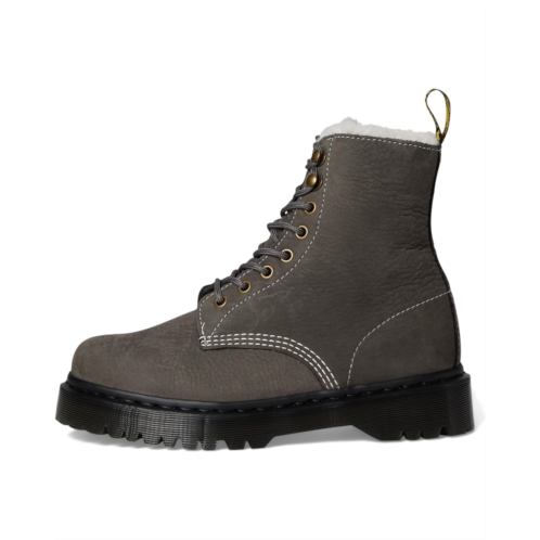 Soft at heart, tough in nature. The Dr. Martens 1460 Pascal Bex Fl boots are reinforced with weather-textiles that are crafted for all the elements. Their inner is fitted with a faux fur WarmWair lining to keep the cold out. Across the upper, water-resistant Milled Nubuck leather with white stitching keeps wet weather at bay while being relaxed from the first wear. Their antique gold hardware contrasts with the leather, and the silhouette is finished with the brand's scripted heel loop, black welt stitching, and a smoke Bex polyvinyl chloride outsole for extra height. These ankle-high laced boots are designed with a polyester insole that keeps your feet cool and comfortable.