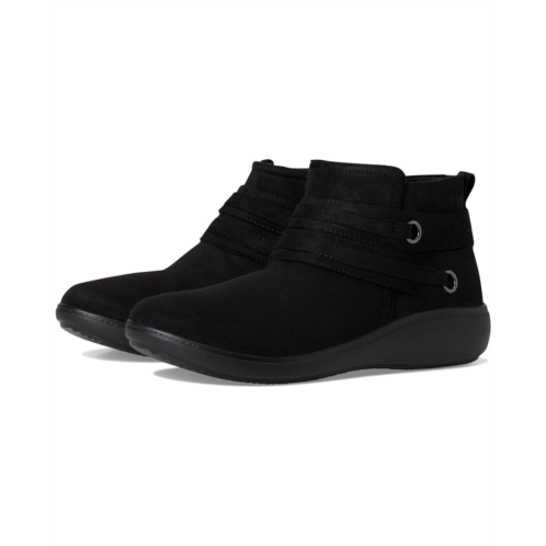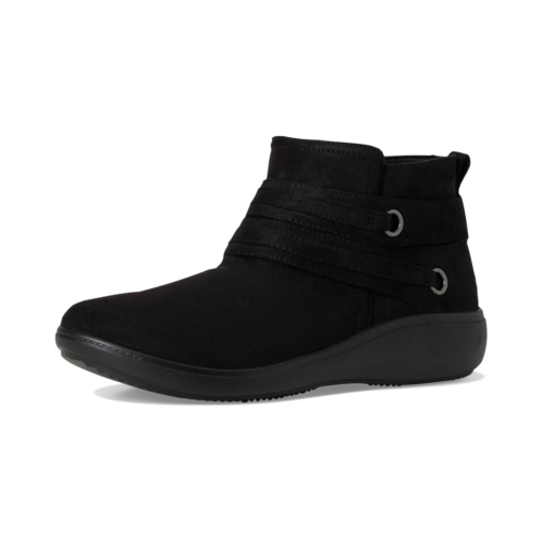 Stay warm, stylish, and ready for anything in these women's ankle booties with life-changing comfort. Stretch microfiber upper with partially recycled linings, a round toe, side zipper, and decorative strap detailing. BZEES Air Step Technology: Designed so you'll feel weightless, energized and free. Ultra Lightweight: Step lightly with a nearly weightless feel. Dynamic Stretch Fabrics: Move freely in shoes with built-in stretch. FreeFoam Comfort: Low pressure insoles with maximum foot contact and cushy arch support.