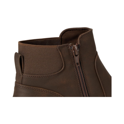 Pull-on style with zippered side closure for ease.