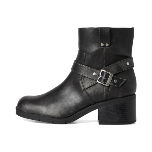 The Dr. Scholl's Janis Rugged Short Boots are rugged women's moto boots infused with cool comfort. Their buckle detail adds an instant edge, while the legendary comfort makes them your best walking shoes. These ankle-high boots are made of a fabric lining and a plant-based BLOOM foam insole with Insole technology offering cushioning, comfort, & support. The faux leather upper is styled with strap details, an iconic buckle accent, and a round toe design. Their lining, topcloth, toe box, and heel counter are partially made from recycled plastic bottles. The zippered side closure ensures easy on and off. Make your fashion statement wearing these heeled boots.