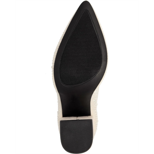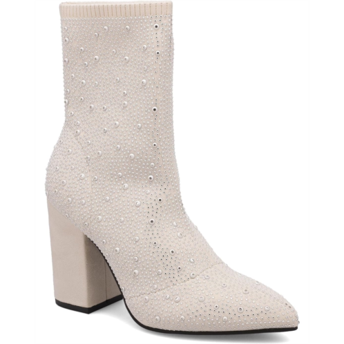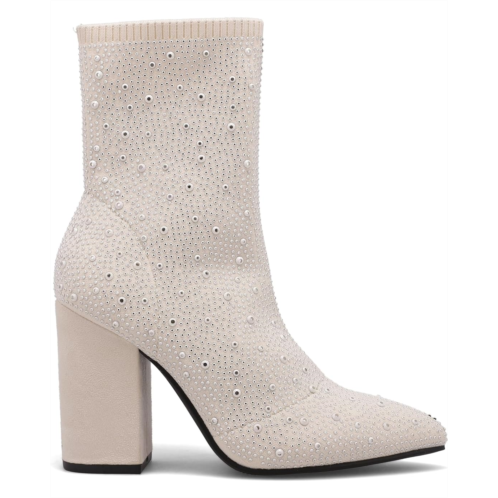 Elevate your night out look with the MAGDALENA. A slip-on sock bootie crafted with stretch knit material and a rhinestoned covered body. Finished on a suede 3.7-inch heel and a pointed toe, she's a showstopper you won't stop receiving compliments in.