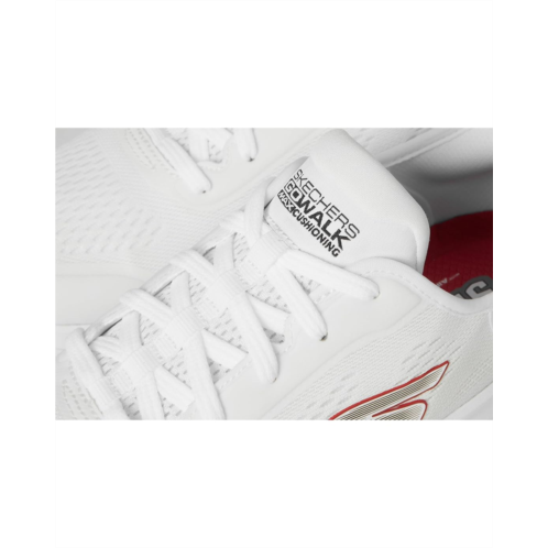 Elevate your sporty performance wearing SKECHERS Performance Hands Free Slip-Ins Go Walk Max Walker - Next Generation Sneakers, crafted in a sleek silhouette with a lace-up design. The low-top sneakers feature an engineered mesh upper with signature Skechers logo detail on the side panel, polyester lining, and comfortable ethylene vinyl acetate with max cushioning and Hyper Arc fit.