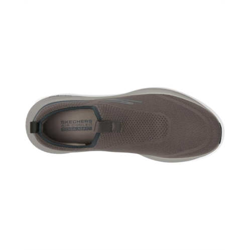 Next-level performance with unbeatable comfort styling SKECHERS Go Run Elevate 2.0 - Upraise. Enjoy the ultimate sock-like comfort with the Stretch Fit slip-on design, while the lightweight ULTRA GO cushioning propels you forward. Experience breathable bliss with the Air-Cooled Goga Mat insole and Ortholite comfort foam, ensuring long-term support. Seamlessly transition with NRT - Natural Rocker Technology, all encased in a breathable athletic mesh upper. Perfect for any stride, the flexible rubber traction outsole keeps you grounded.