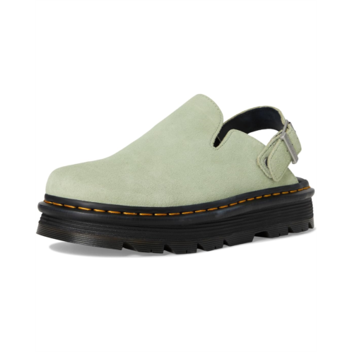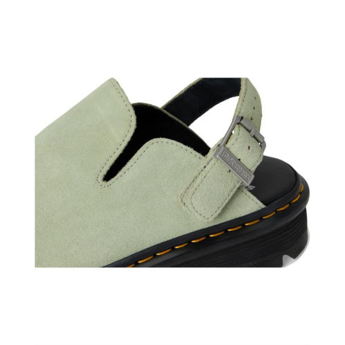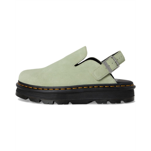 The Dr. Martens Zeb Zag Mules offer an innovation in comfort, built on a hybrid air-cushioned outsole that fuses featherweight EVA with rugged PVC. Crafted from lightweight, versatile suede, they're designed to be worn however you feel like - in summer or out of the conventional season. The adjustable hook-and-loop strap ensures a secure fit, while the Goodyear welted construction delivers signature durability. These low-top shoes are made of a leather upper, PVC & EVA midsole, and leather lining. The yellow welt stitching marks the mules as Dr. Martens.