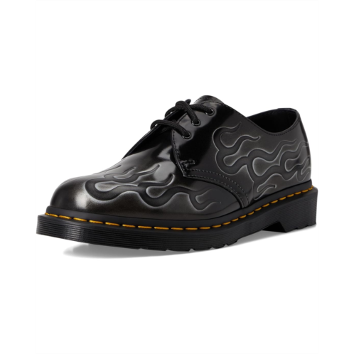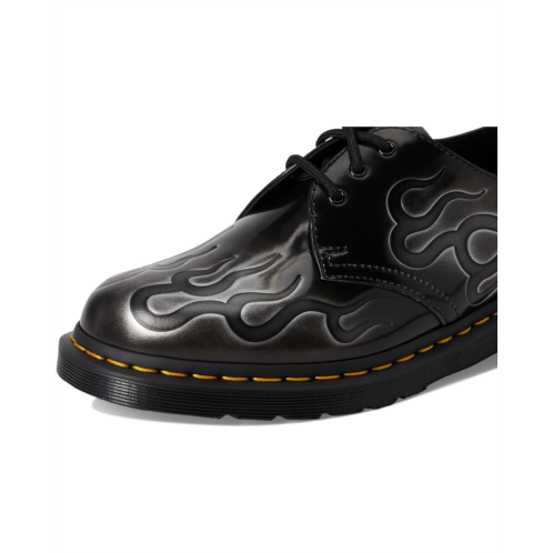 The classic Dr. Martens 461 Inferno shoe is constructed from Arcadia, a high-shine archival leather that exposes more of the base silvertone through wear, featuring embossed flames. The low-top style features a sleek leather upper, breathable leather lining, and EVA insole.