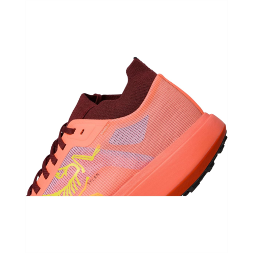 Athlete-inspired and built for speed, this is the Arc'teryx Sylan Pro shoe for mountain runners looking to move faster on technical trails. The midsole's rocker geometry drives propulsion and is made from InFuse, a light, highly responsive EVA and Polyolefin composition that provides rebound and absorbs shock. The grippy Vibram Megagrip outsole uses LITEBASE technology to shed weight without sacrificing performance, and aggressive lugs deliver a confident bite. The fit locks tight, and a knit collar seals out debris.