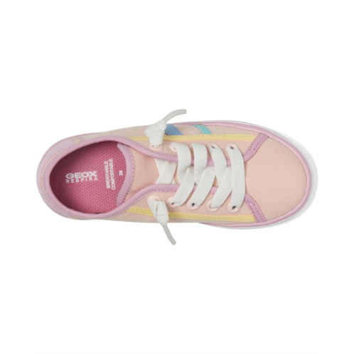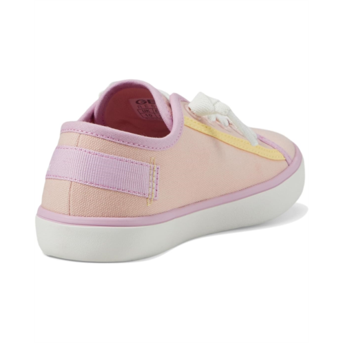 Keep your feet feeling dry and comfortable throughout the day wearing Geox Kids Gisli 68 Sneakers that come with a breathable and waterproof membrane for natural temperature regulation. The sneakers are crafted with a multicolored textile canvas polyester upper, textile canvas cotton & synthetic microfiber lining, and textile mesh polyester insole. The lace-up closure offers a customizable fit.