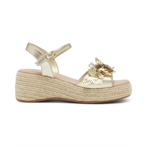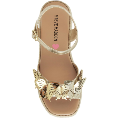 Let your kiddo mark her fashion territory wearing the Steve Madden Kids Swiftt Sandals. This square toe pair features synthetic upper construction with striking butterflies, synthetic rubber lining and insole. The buckled ankle strap is accompanied by braided wedge heels for essential support.