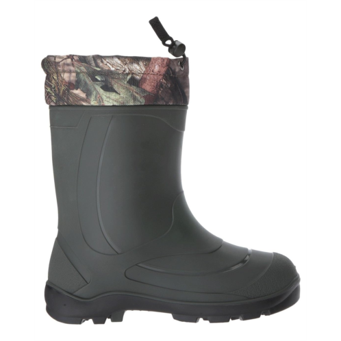Slip-on snow boot features a durable rounded-toe, easy-grab lace at the collar and a moisture-wicking lining. The lugged rubber SNOWBUSTER outsole provides stability for wet surfaces.