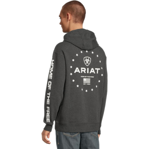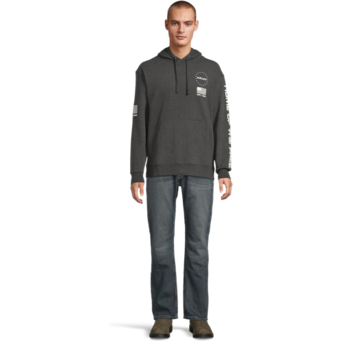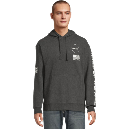 Find the perfect throw-on-and-go layer in the Ariat Sponsor Patriot Hoodie. This pull-on style hoodie features drawstrings, long sleeves with ribbed cuffs, front kangaroo pocket, and graphic print throughout.