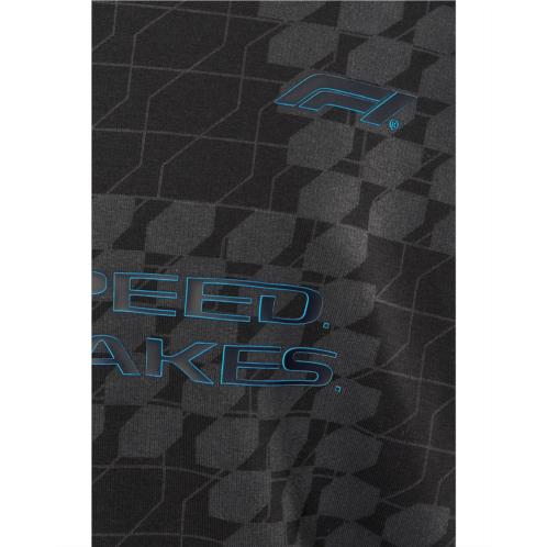 Allover graphic print pattern and PUMA and F1 branding details.