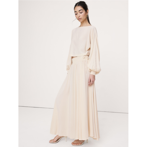 - Going somewhere? Wear this. We cut this maxi skirt from a soft, light-as-chiffon georgette, opting for a smocked waistband and double-drawstring closure for a custom fit.