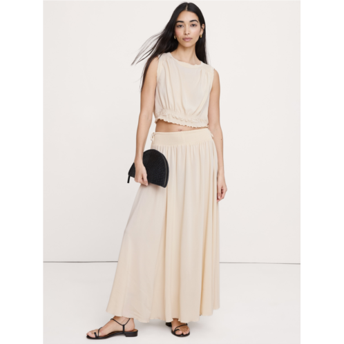 - Going somewhere? Wear this. We cut this cropped tank from a soft, light-as-chiffon georgette, adding delicate smocked detailing at the shoulders and hem. Make it a set with the matching maxi skirt.Semi-Sheer in lighter colors.