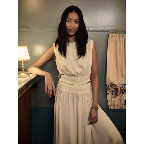 - Going somewhere? Wear this. We cut this cropped tank from a soft, light-as-chiffon georgette, adding delicate smocked detailing at the shoulders and hem. Make it a set with the matching maxi skirt.Semi-Sheer in lighter colors.