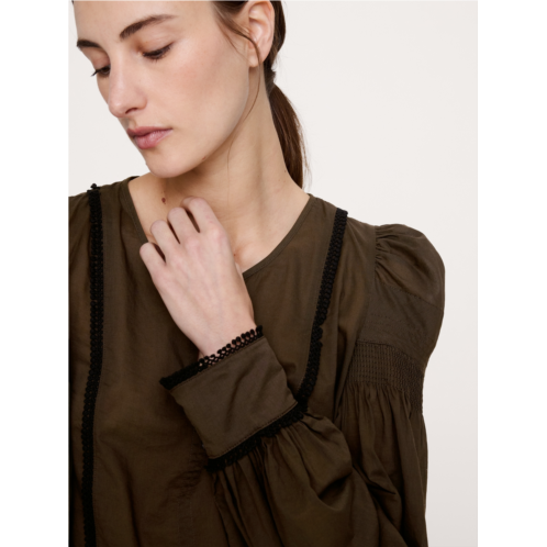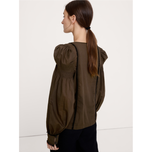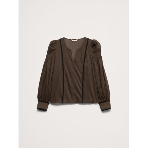 - In your romantic era. Our take on the season's puff-sleeve trend, we added delicate eyelash lace trim to the cuffs, hem, and bodice of this top, crafted in a semi-sheer and lightweight cotton lawn.