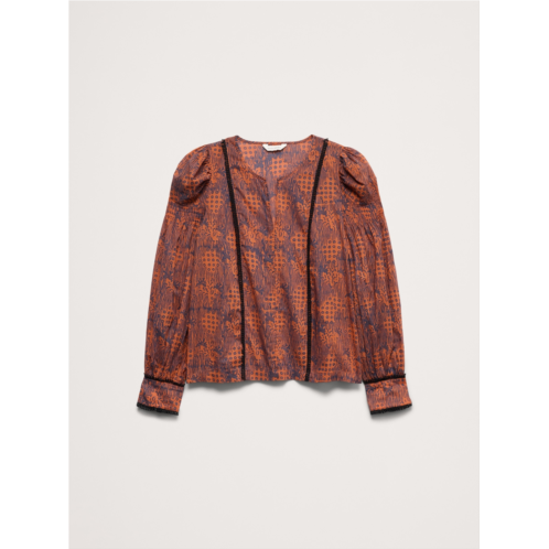 - In your romantic era. Our take on the season's puff-sleeve trend, we added delicate eyelash lace trim to the cuffs, hem, and bodice of this top, crafted in a semi-sheer and lightweight cotton lawn.