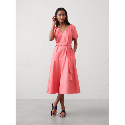 [US] bananarepublic Poplin Gathered-Shoulder Midi Dress