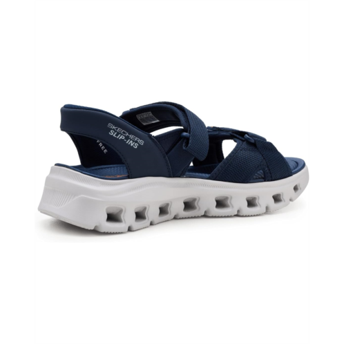 - Enjoy sunny days in the stylish comfort of Skechers Glide-Step Pro Salvo Hands Free Slip-In Sandals. Designed with signature Heel Pillow, this casual sandal features a woven fabric upper with adjustable straps, a Skechers Hands Free Slip-ins back heel, a contoured Skechers Memory Foam footbed, and a Glide-Step geometric cushioned midsole.