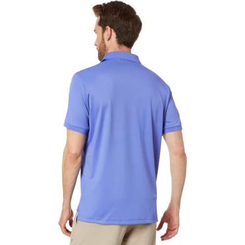 Solid polo in a breathable poly-blend fabrication.